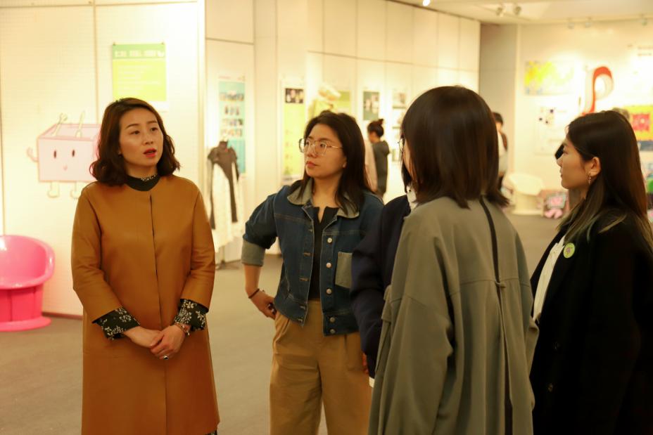 跟随学生讲解员的脚步,“创意涌动,万象新生”、“同育新人,实践赋能”、“志愿微光,共创美好”、“非遗传承,薪火永续”四个篇章娓娓道来,以“展板+实物”的形式融汇了学院六系三部各年级、各专业的学生优秀课程作品。值得一提的是,本次展览中展出了由我院专业教师陈彬和辅导员葛子墨联合教学的《非遗研培与社会实践》的优秀课程作业,作为上海市一流本科课程,聚焦上海崇明土布的发展和创新,其中的两件服饰设计作品还曾前往波兰的国际时装周展出。学院一直致力于建设“1+X”的校园设计文化集群,以“X”为变量,搭载课程、实践、展览等模式,本次“课程成果向集成展览”模式创新取得了青年学子的广泛关注,期待未来能够凝聚更多力量为学生提供宽广的展示舞台。