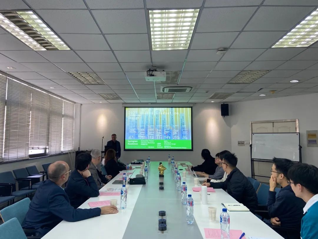 陈庆军教授向马德里理工大学一行介绍了全国联合毕业设计行动的概况和成果,诚挚邀请马德里理工大学师生参加,共同推进创新设计赋能可持续发展。此外,两校博士生还进行了学术交流与分享。西班牙马德里理工大学Jesús MAYOR博士做了主题为数字化时尚的报告,东华大学刘欢欢博士分享了主题为服装科技与智能穿戴设计研究的报告。