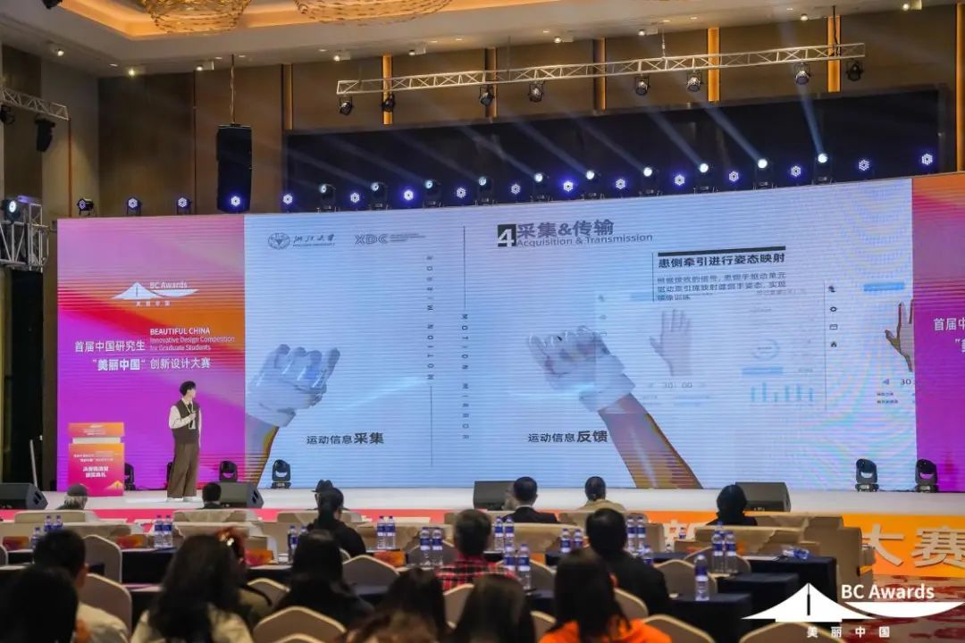 浙江大学学生团队带来一款面向脑卒中康复的智能镜像训练手套,可以精准复刻手部动作和触觉感知,有望用于智能辅助患者进行康复训练;中国美术学院的参赛学生作品《宋韵·游秇绘卷》是一款国风题材的游戏,玩家在水墨画意境中完成探险之旅,展现了东方美学韵味;上海理工大学学生团队带来的《建德苞茶·茶话会》系列文创,让人在赏茶、品茶、知茶、乐茶中,身临其境感受建德苞茶绵延的文化和故事……路演现场,一个个奇思妙想的创意设计,展现了青年学子建设美丽中国的坚定信念和踔厉奋发的实际行动。