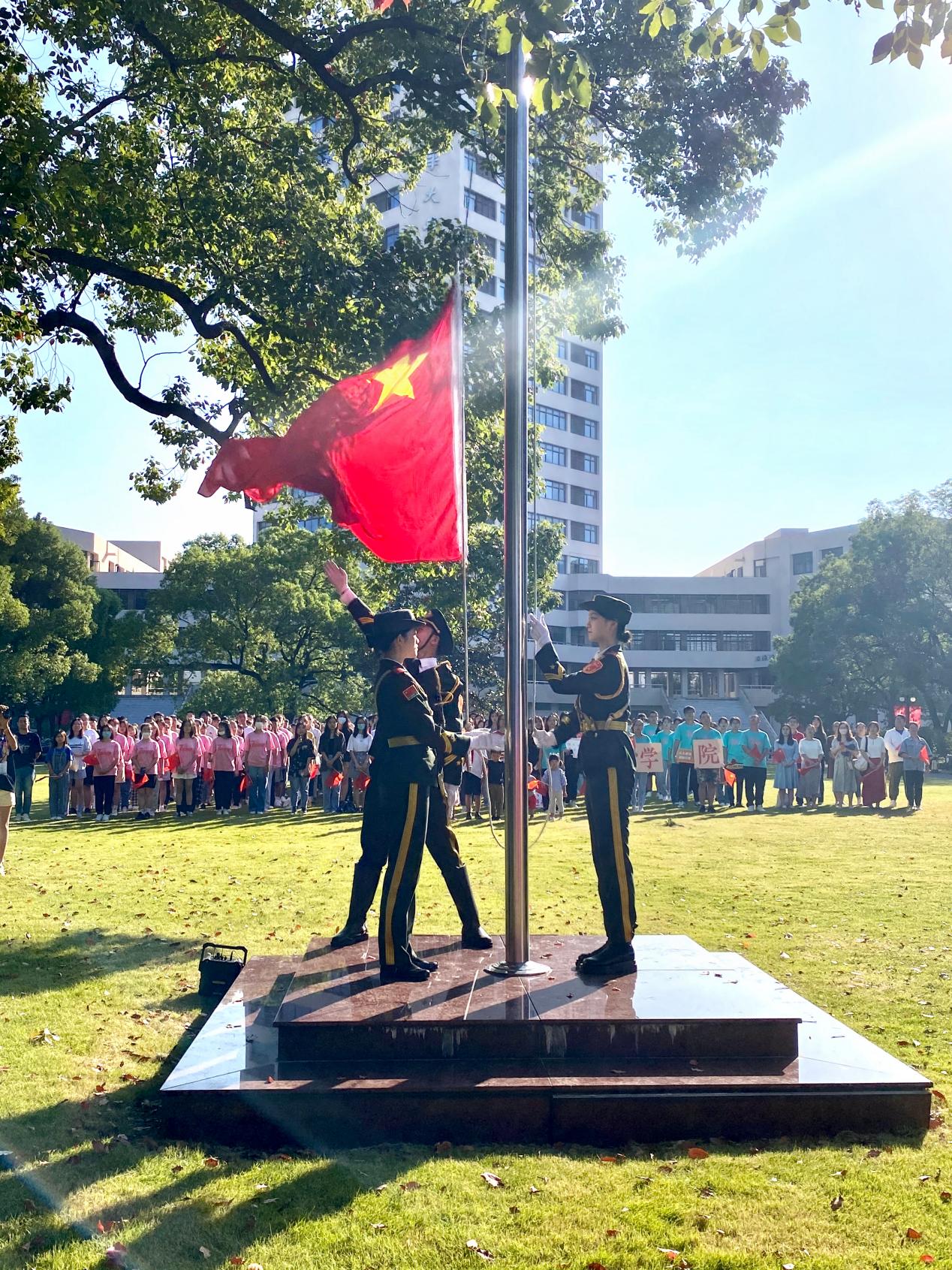 我校必威国际官网客服电话是多少 国旗护卫队举行国庆升旗仪式