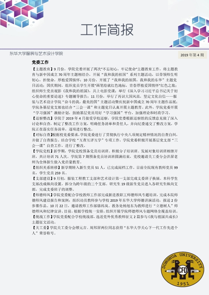 2019手机博彩平台betway必威安卓版 工作简报·第4期
